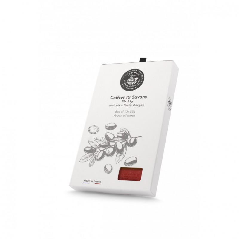This pack of 10 Organic Argan Oil Soaps contains scented soaps. Hotel size is suitable for bathrooms and will be a unique gift for friends. Enriched with Organic Argan oil, these soaps leave the skin soft and subtly scented. This package included 10 soaps of 25g.