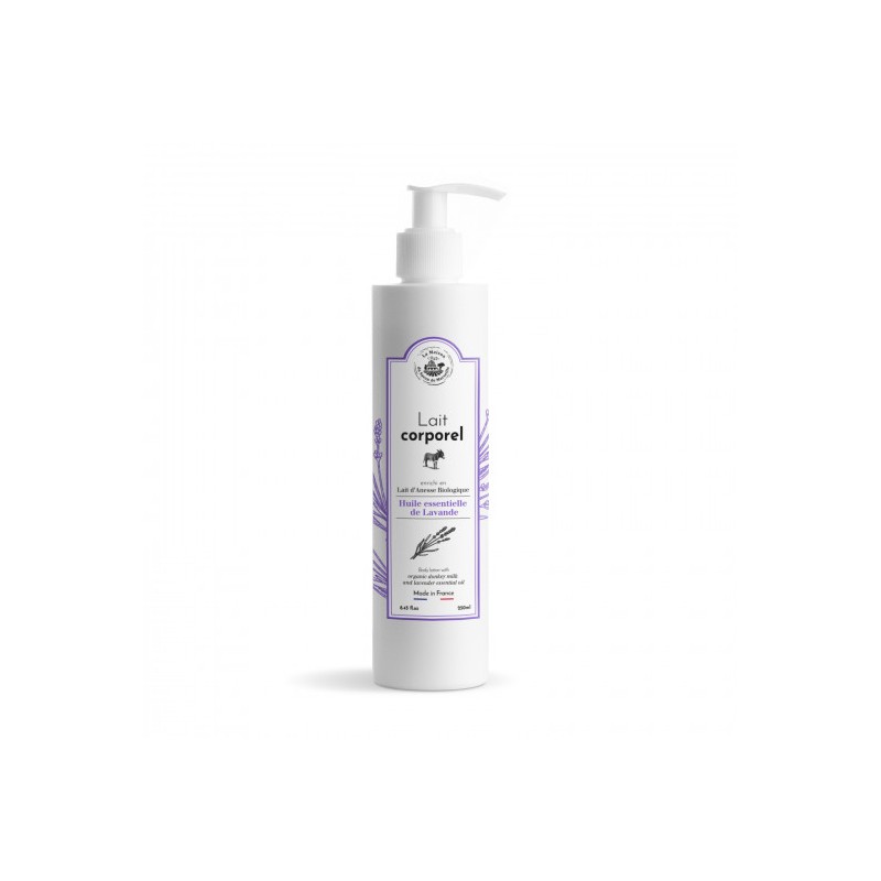 This body lotion enriched with donkey milk and scented with Lavender essential oil nourishes, softens and regenerates the skin. This body milk 250 ml with organic donkey milk is formulated without silicone, paraben and EDTA. It is soothing and regenerates skin cells, it improves the appearance of the skin. Shea butter present in milk helps nourish and soften the skin. Body Lotion made in France.