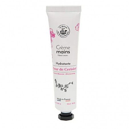 Cette crème mains, 30ml, est enrichie au lait d'ânesse et au parfum fleur de Cerisier. Le lait d'Anesse est un ingrédient aux multiples vertus et propriétés thérapeutiques. On en retire 5 propriétés importantes : il contient des minéraux, acides gras essentiels bonnes pour la peau, il retend l'épiderme, il régénère les zones qui sont irritées par les attaques du quotidien ou abîmées ainsi que les tissus, il atténue les ridules et rides d'expression. La crème mains 30 ml à la fleur de Cerisier permet de prendre soin de vos mains. Sa richesse en huile d’argan entretient les ongles et rend les mains plus douces. La crème mains 30ml permet aussi de protéger vos mains du froid et des crevasses. Toutes nos crèmes mains sont faites en France