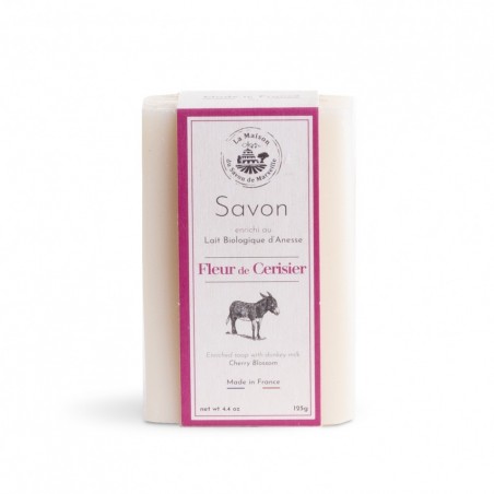 Le lait d’ânesse est l’un des produits les plus nobles du marché. C’est un ingrédient rare aux multiples vertus et propriétés thérapeutiques reconnues depuis l’Antiquité. Le lait d'ânesse que nous utilisons provient du Sud Ouest de la France. Il est riche en acides gras essentiels et en minéraux. Il raffermit, régénère et répare les zones abîmées, fatiguées ou irritées. Le parfum lait d'ânesse qui compose ce savon est une senteur issue de la ville de Grasse. Senteur douce et musquée aux notes poudrées, fleuries en coeur avec des touches de violettes et de roses. Teneur en lait d'anesse bio: 2%. Ce savon 125g est enrichi en fleur de cerisier et lait d'ânesse. Formule sans colorants, SANS EDTA.