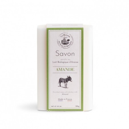 Le lait d’ânesse est l’un des produits les plus nobles du marché. C’est un ingrédient rare aux multiples vertus et propriétés thérapeutiques reconnues depuis l’Antiquité. Le lait d'ânesse que nous utilisons provient du Sud Ouest de la France. Il est riche en acides gras essentiels et en minéraux. Il raffermit, régénère et répare les zones abîmées, fatiguées ou irritées. Le parfum lait d'ânesse qui compose ce savon est une senteur issue de la ville de Grasse. Senteur douce et musquée aux notes poudrées, fleuries en coeur avec des touches de violettes et de roses. Teneur en lait d'anesse bio: 2%. Ce savon 125g est enrichi en amande et lait d'ânesse. Formule sans colorants, SANS EDTA.