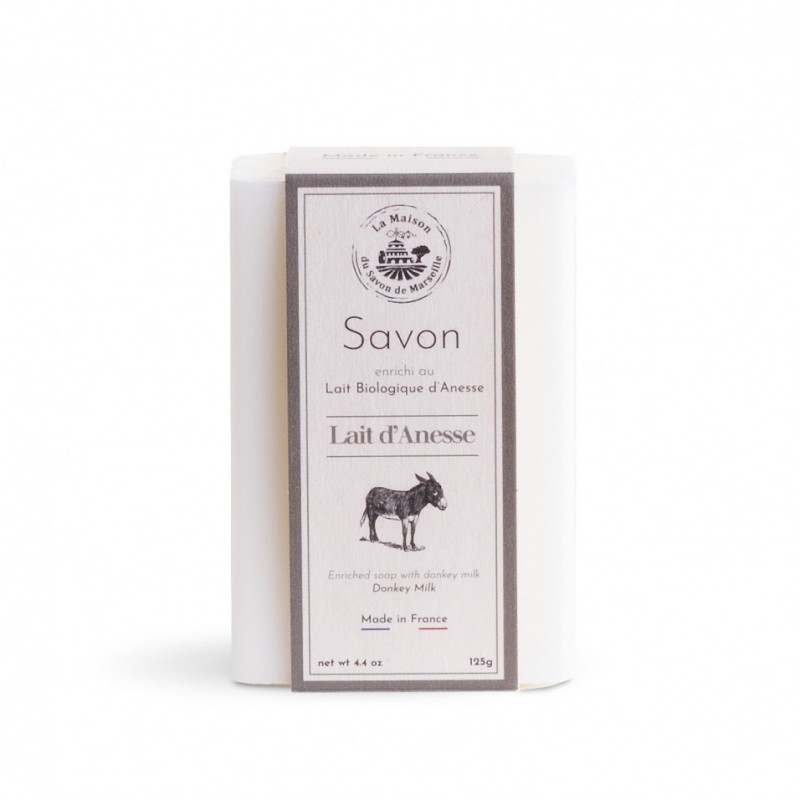 Le lait d’ânesse est l’un des produits les plus nobles du marché. C’est un ingrédient rare aux multiples vertus et propriétés thérapeutiques reconnues depuis l’Antiquité. Le lait d'ânesse que nous utilisons provient du Sud Ouest de la France. Il est riche en acides gras essentiels et en minéraux. Il raffermit, régénère et répare les zones abîmées, fatiguées ou irritées. Le parfum lait d'ânesse qui compose ce savon est une senteur issue de la ville de Grasse. Senteur douce et musquée aux notes poudrées, fleuries en coeur avec des touches de violettes et de roses. Teneur en lait d'anesse bio: 2%. Formule sans colorants, SANS EDTA.
