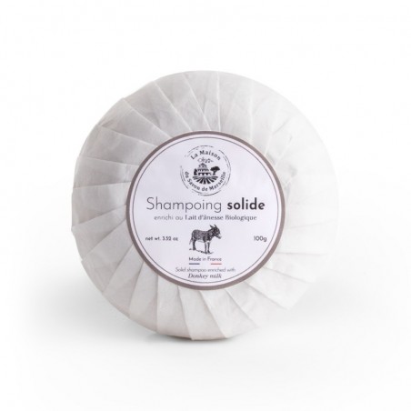 Ce Shampoing solide , pour cheveux normaux au lait d'ânesse bio est facile à utiliser , il dure longtemps et prend soin de vos cheveux . ATOUTS PRODUITS : - Vos cheveux graissent moins vite qu'avec un shampoing classique. - Longévité : il faut compter 3 semaines d'utilisation journalière pour ce shampoing de 100 grammes . Ne contient pas de silicones, ni de sulfates . Le silicone est un filmogène qui entoure le cheveu pour lui donner une apparence lisse et soyeuse . En vérité, cette cape étouffe le cheveu qui meurt peu à peu : chute de cheveux , pellicules ... PACKAGING 100% RECYCLABLE : SOUS UN PAPIER PLIE SOLEIL . Attention : Il faut un temps d'adaptation aux cheveux pour qu'ils se fassent à un shampoing solide ( 2 à 3 semaines suivant la longueur du cheveu )